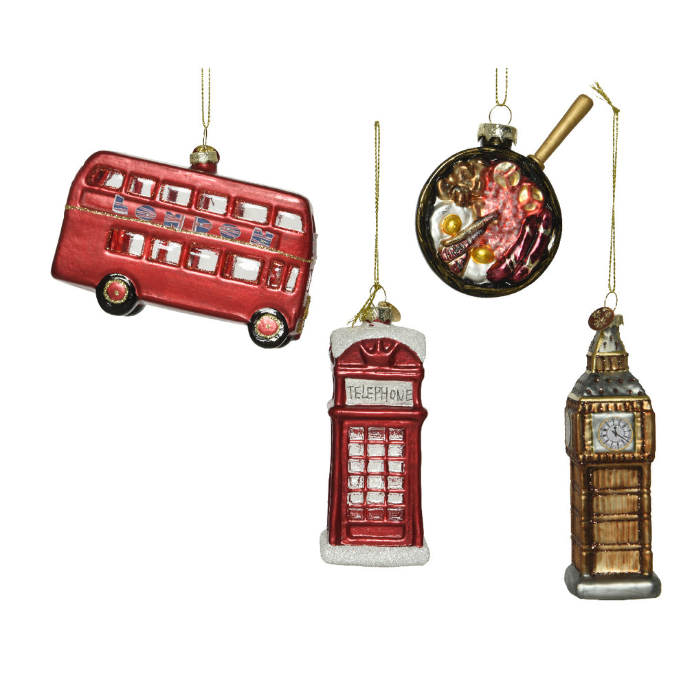Ornament glas - in London geweest - 4 assortie L4.5-W8-H14cm - multi