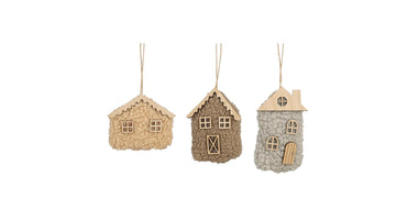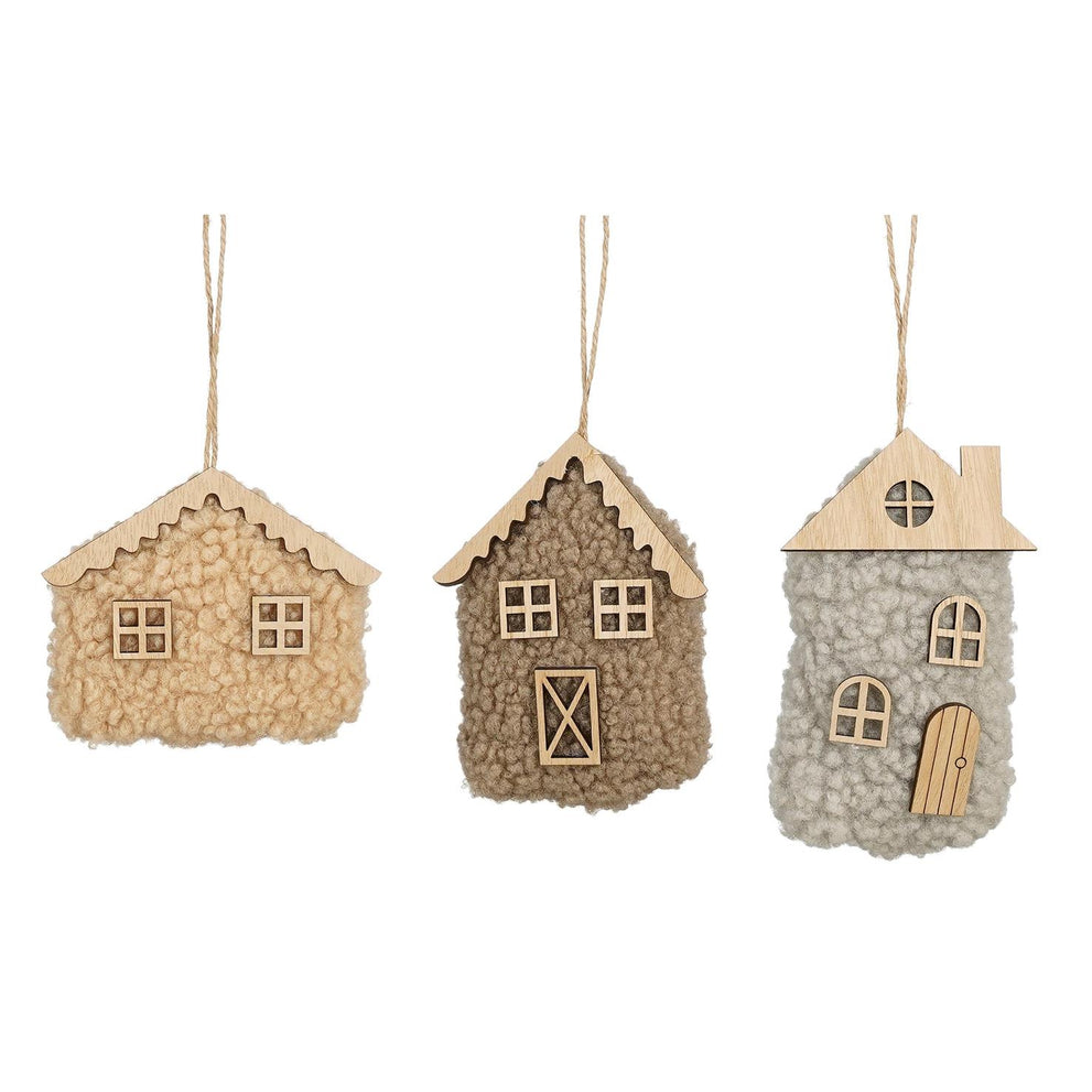 Ornament huis d.bruin grijs l.bruin 3 assorti - l13xb10xh4cm