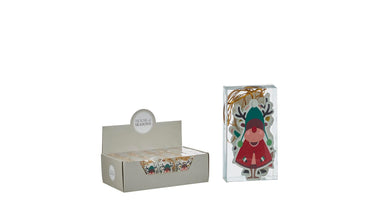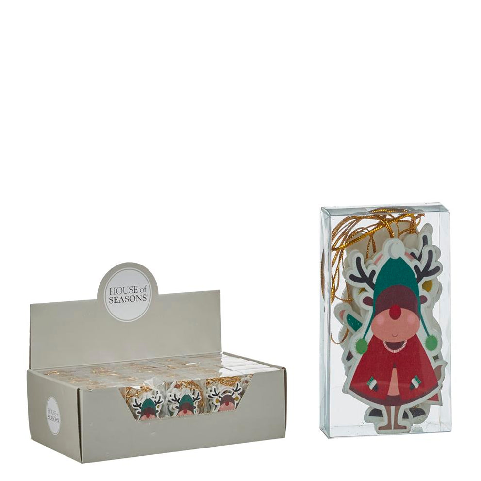 Ornament kerstman hert bladeren ro/wit/gro leaves 6 stuks -