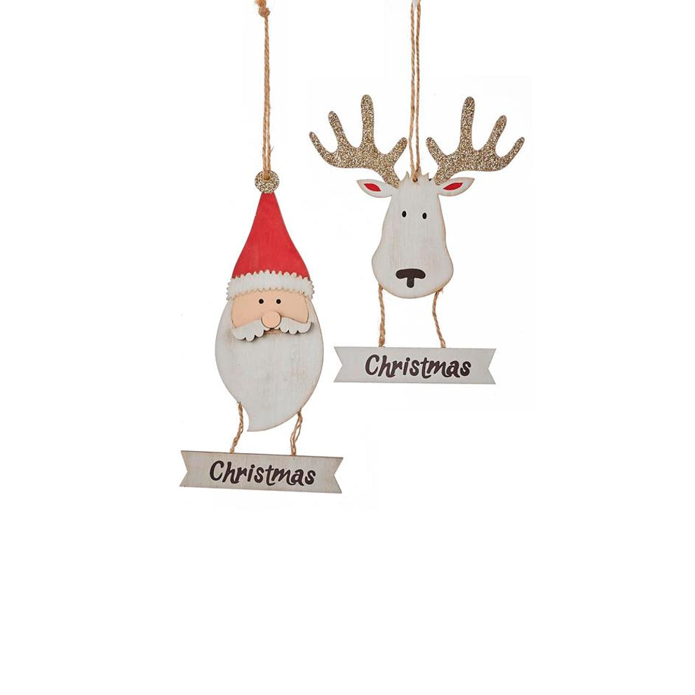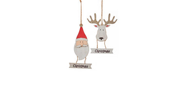 Ornament kerstman hert rood wit 2 assorti - l9xh18cm