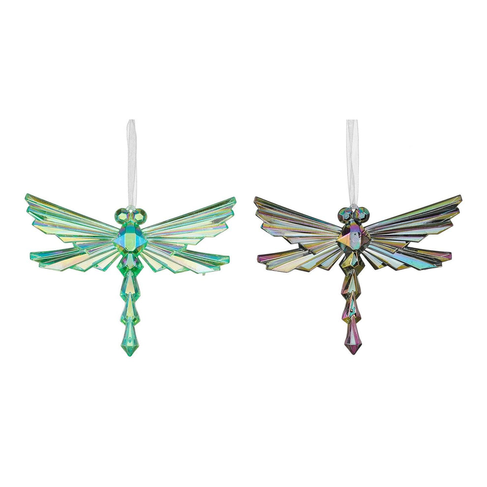 Ornament libelle groen blauw 2 assorti - l14,5xb1xh10cm