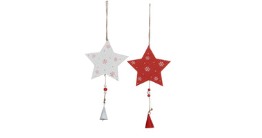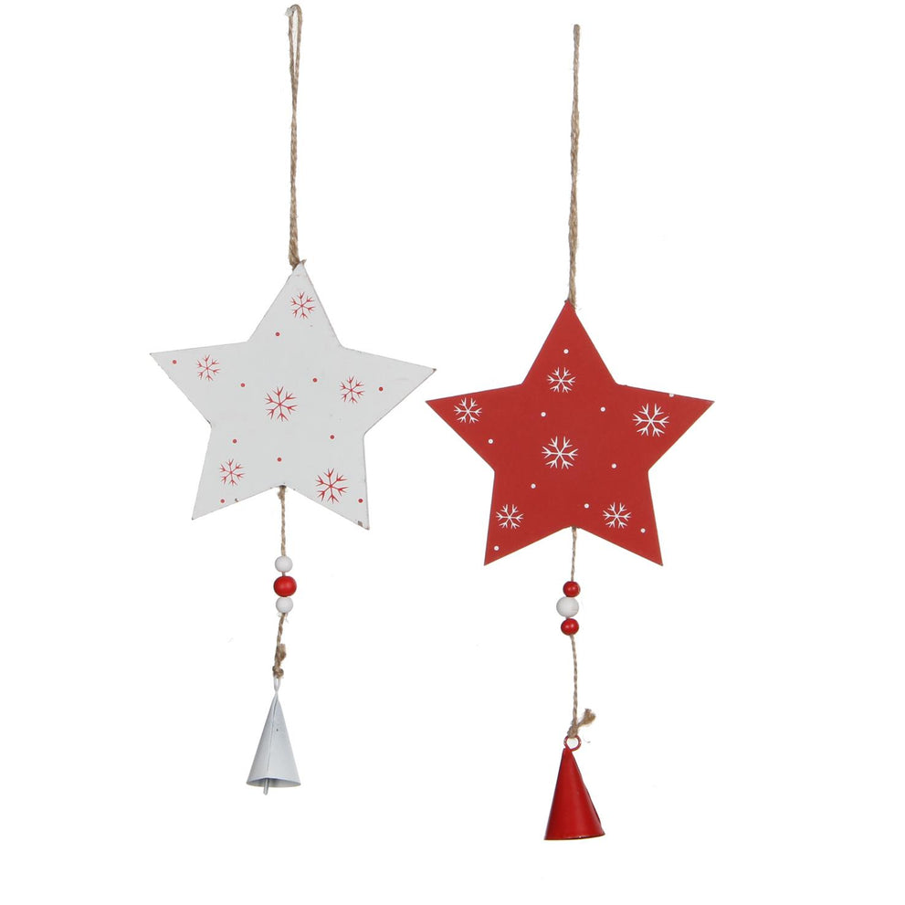 Ornament ster wit rood 2 assorti - l12xb1xh34cm