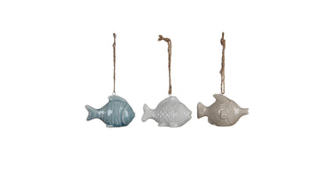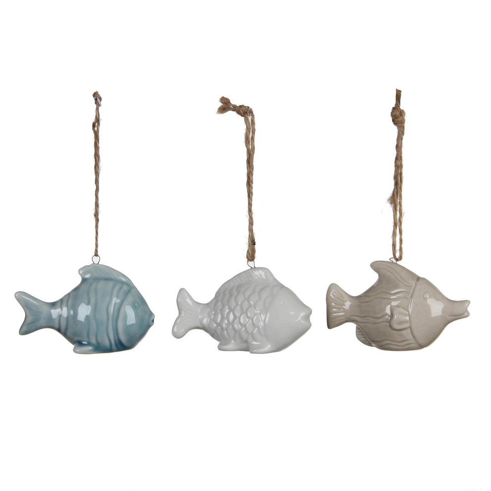 Ornament vis wit l.blauw l.bruin 3 assorti - l8,5xb3,5xh5,5c