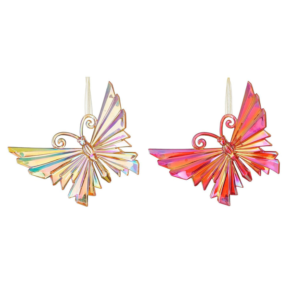 Ornament vlinder rood goud 2 assorti - l14xb1xh11,5cm
