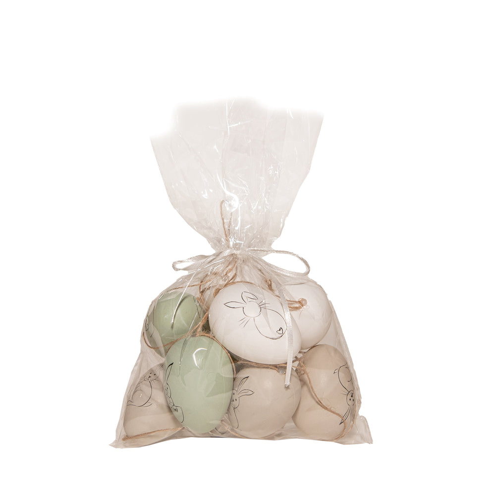 PAASEIEREN 9 STUKS MET HAAS PRINT IN ZAKJE HAAS GROEN WIT