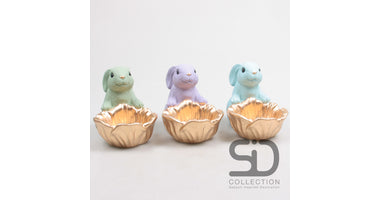 PAASHAAS M/TULP SCHAAL CEMENT 3ASS 16.5X11.5X13 CM GROEN, PAARS, BLAUW