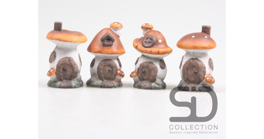 PADDENSTOEL HUISJE 4 ASSORTIE H11 CM AARDEWERK