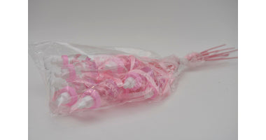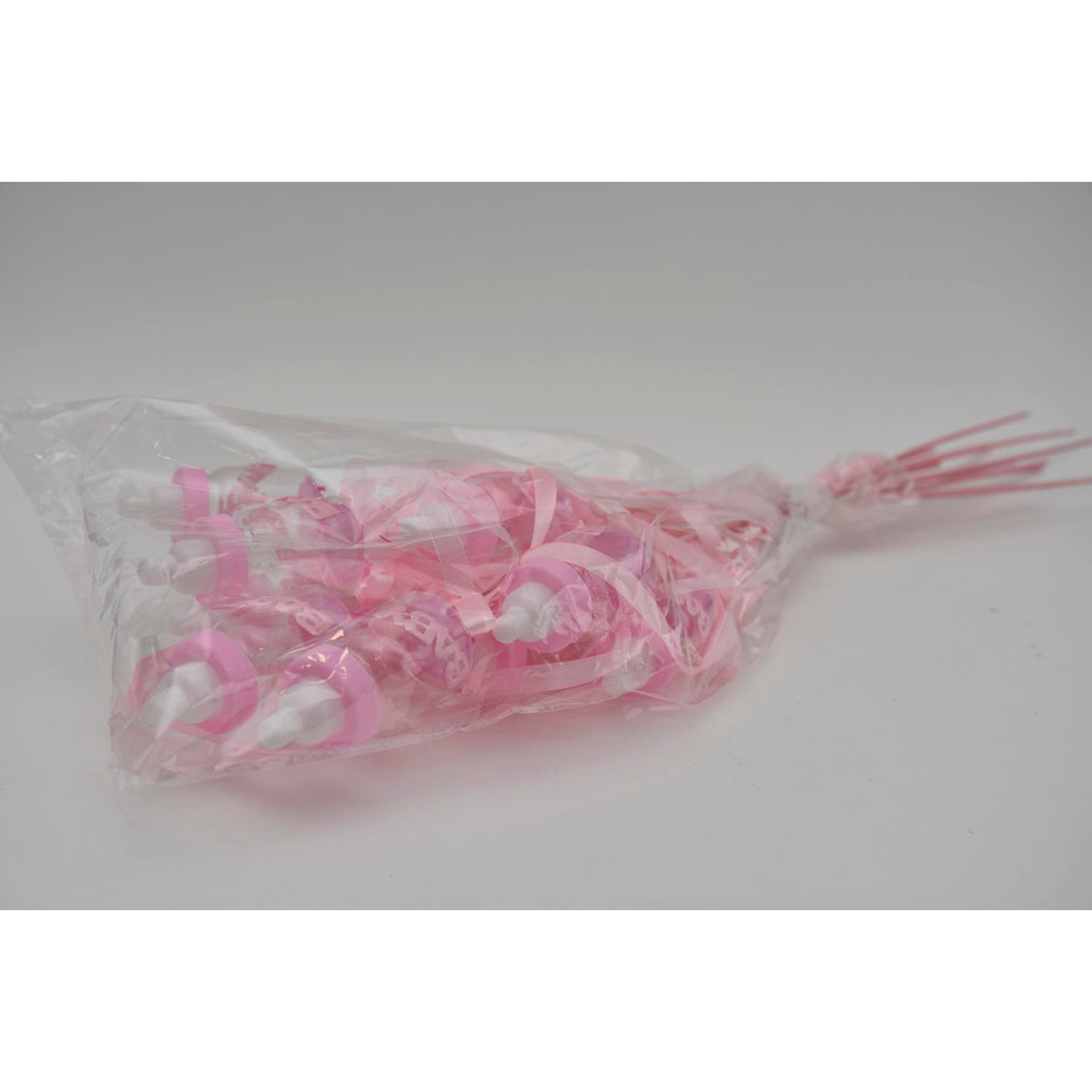 Pak á 12 Baby flesje roze met lint op stok 50cm