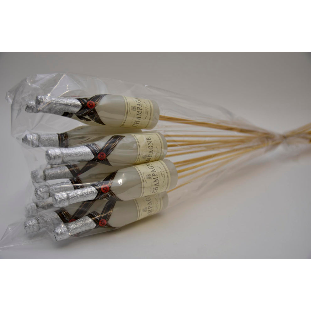 Pak á 12 Champagneflesje 11,5cm wit op stok 50cm