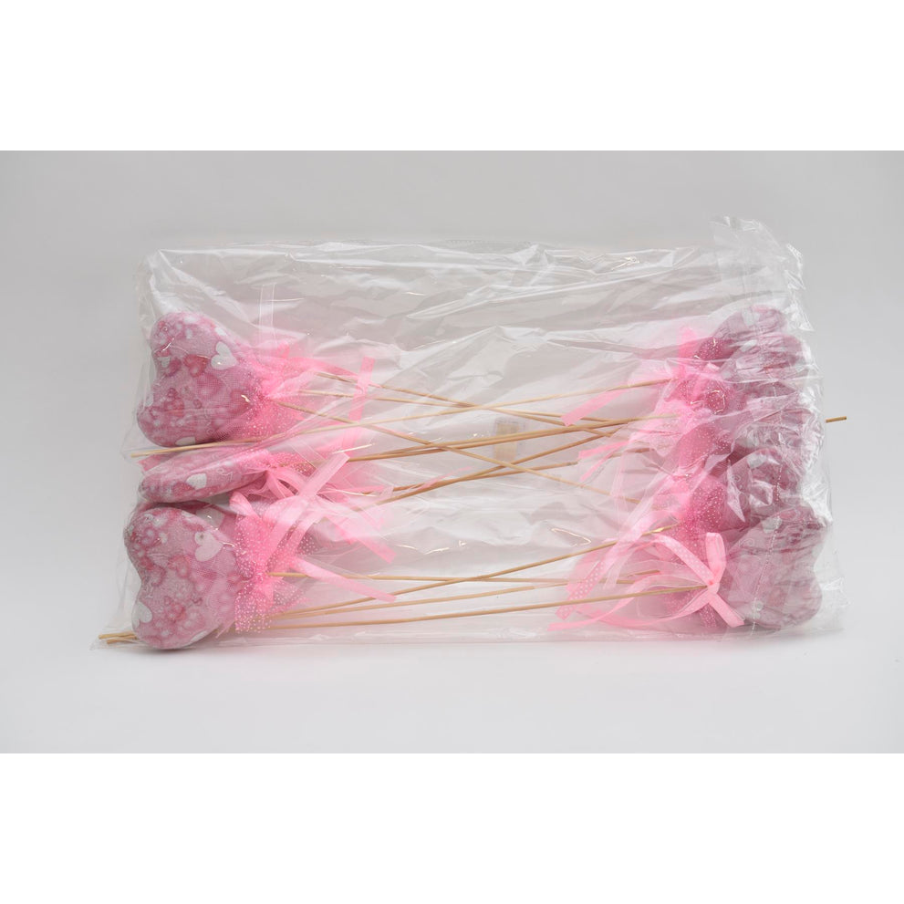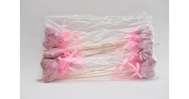 Pak á 12 Hart 12cm roze op 50cm stok met lint
