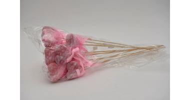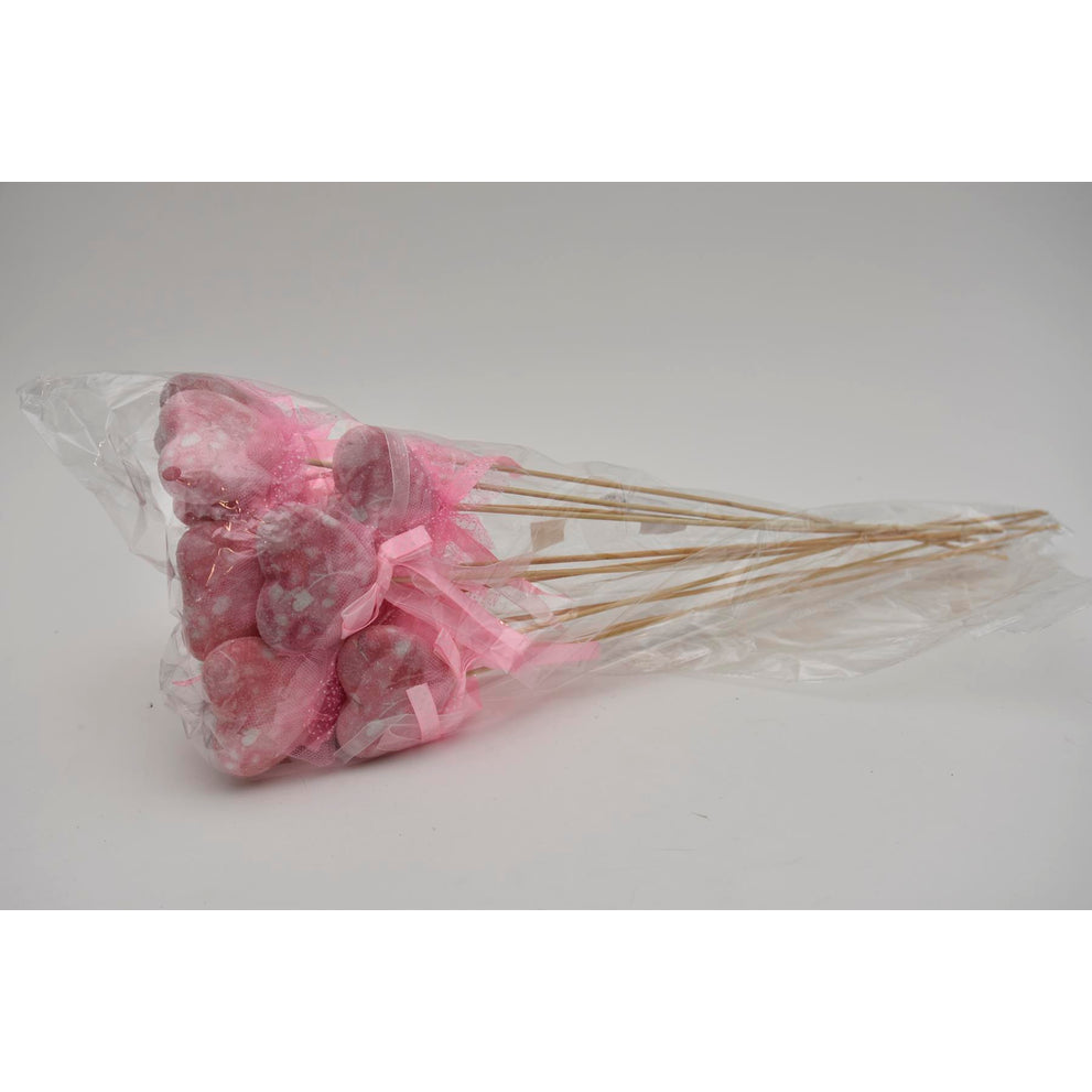 Pak á 12 Hart 6,5cm roze op 50cm stok met lint
