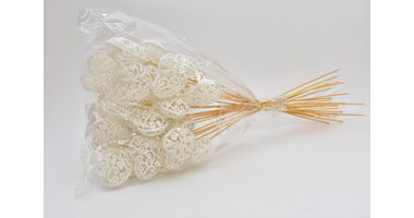 Pak á 25 Hart barok wit flock 7x7cm op 50cm stok