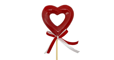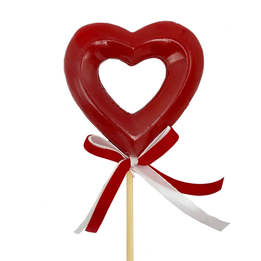 Pak á 25 Open hart rood 7x7cm op 50cm stok met lint