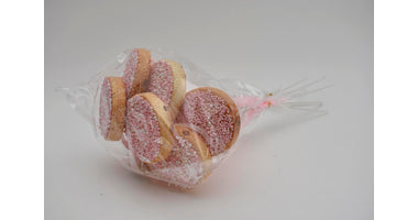 Pak á 8 Beschuit roze GROOT met lint op stok 50cm