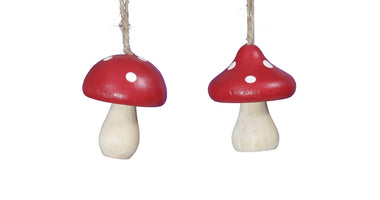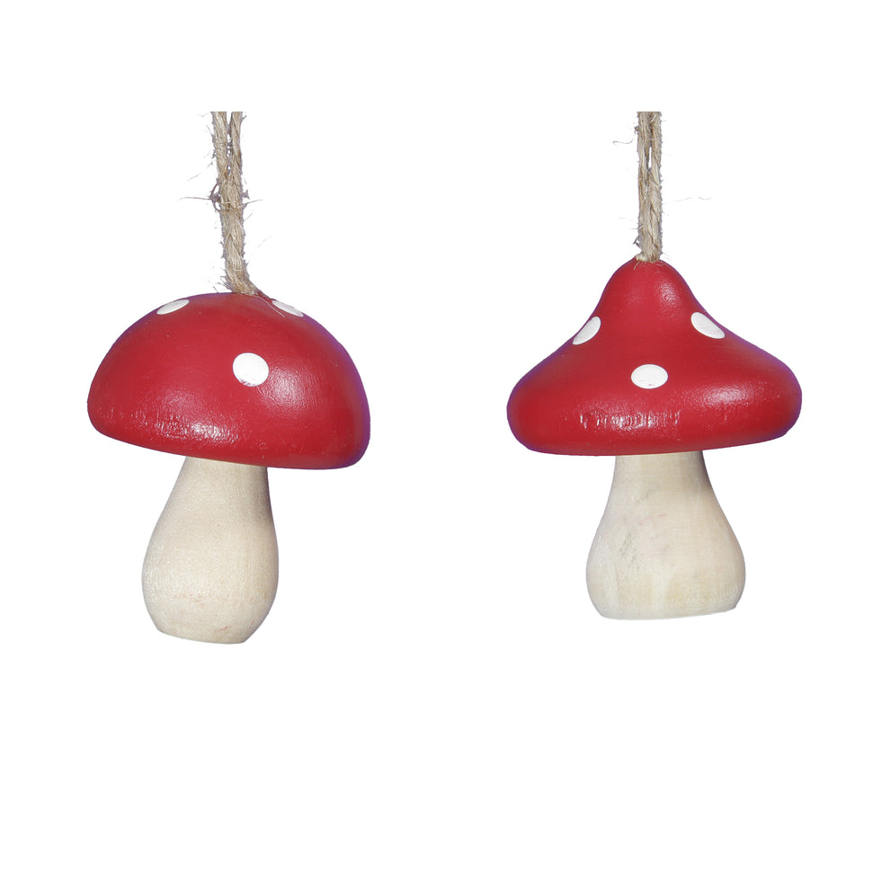 pb. 10 wooden mushroom/hanging red 4x5 cm