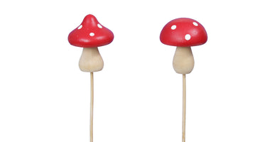 pb. 10 wooden mushroom/stick 2 ass. Red 3.5x4.5 cm