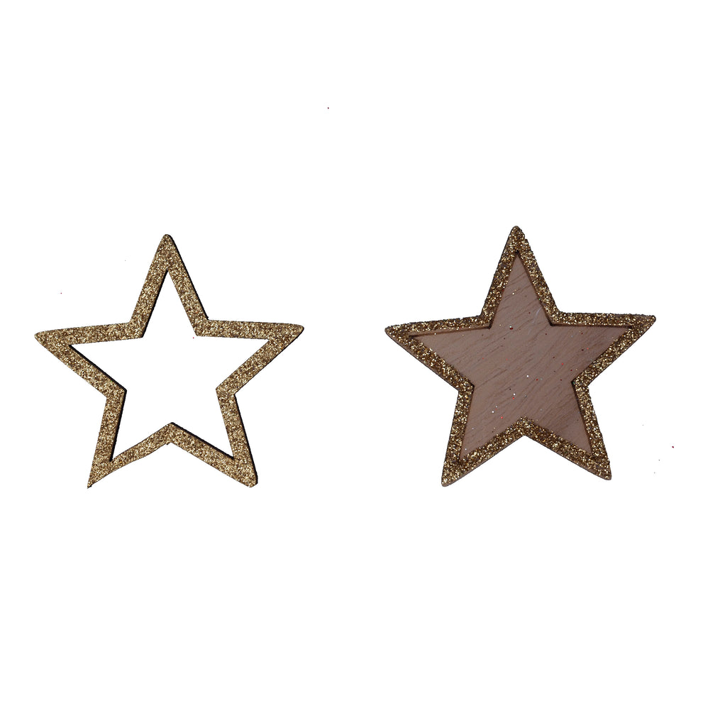 pb. 12 wooden stars w/glitter gold 6 cm