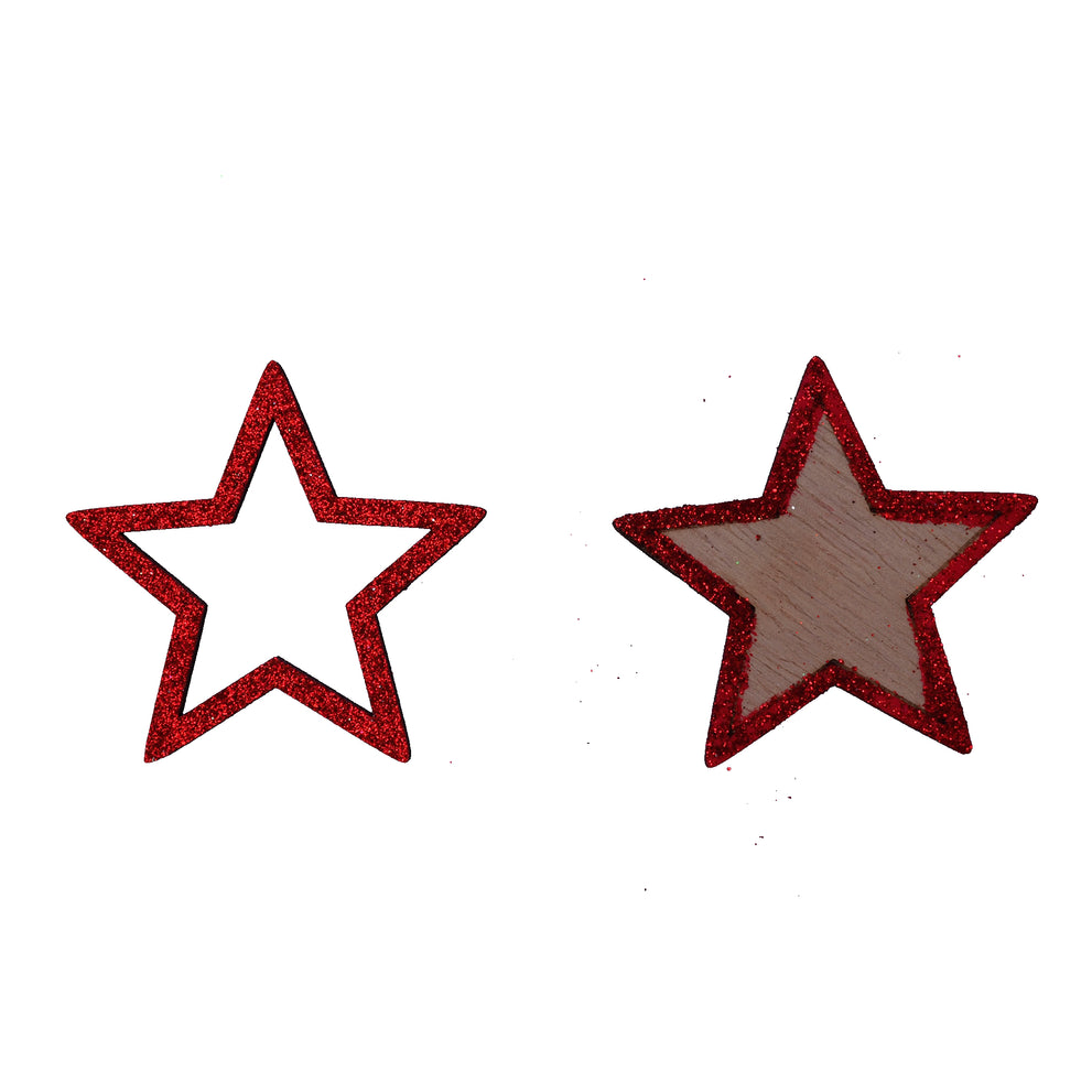 pb. 12 wooden stars w/glitter red 6 cm