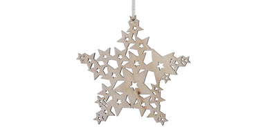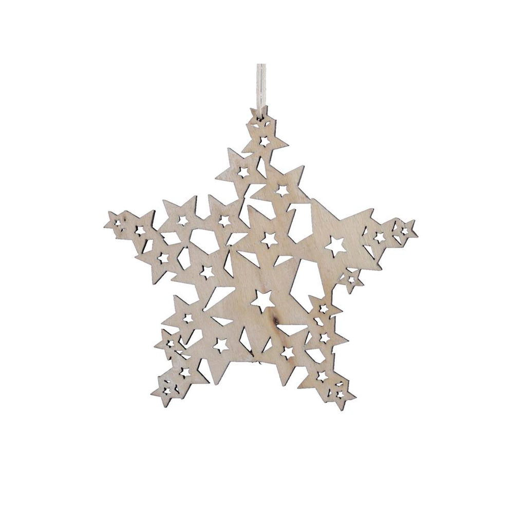 pb. 5 wooden stars/hanging natural 10x10 cm