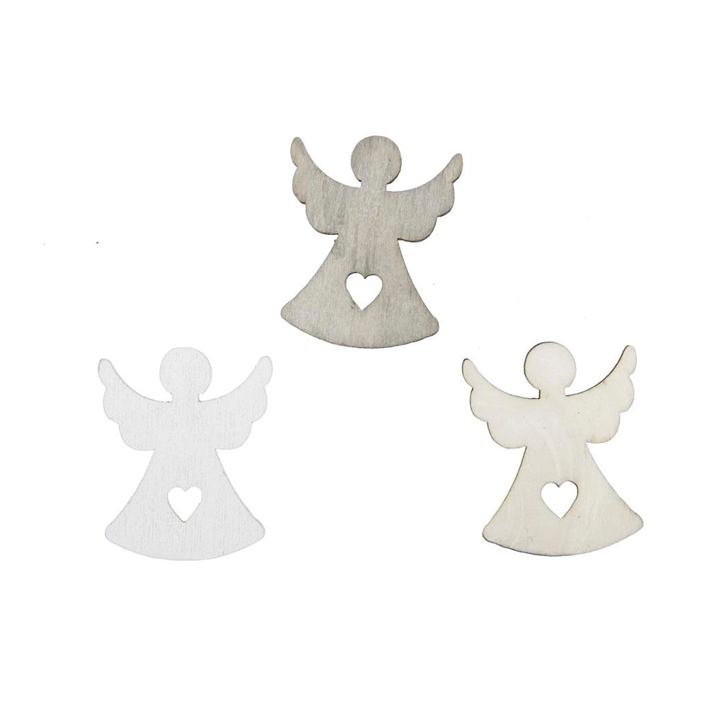 pb. 60 wooden angels 3 ass. natural/grey/white 3 cm