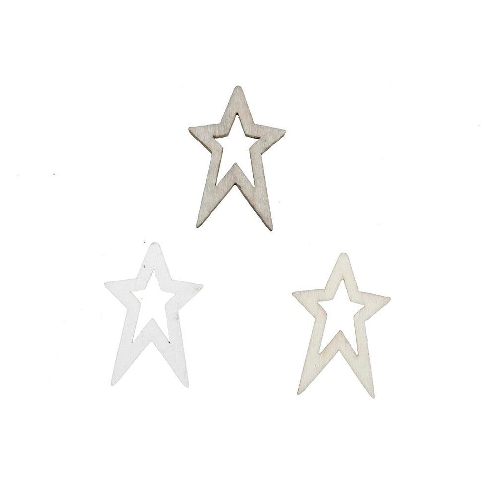 pb. 60 wooden stars 3 ass. white/natural/grey 3 cm
