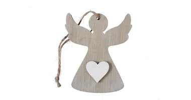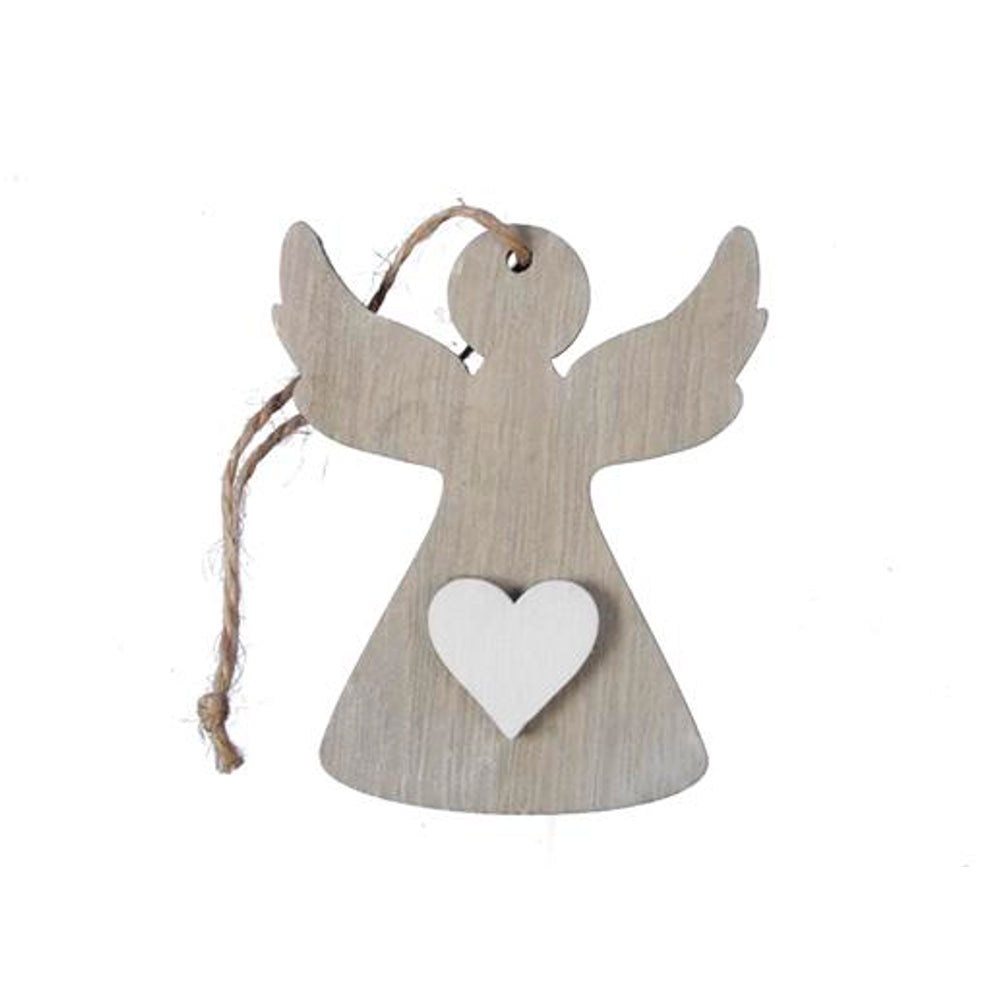 pb. 8 wooden angels/hanging grey/white 7 cm
