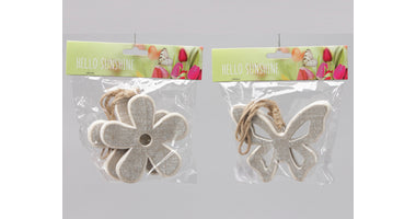 pbh. 2 wooden butterfly/flower/hangers ass. White 10.5x10.5