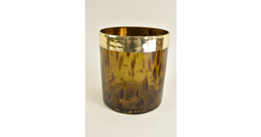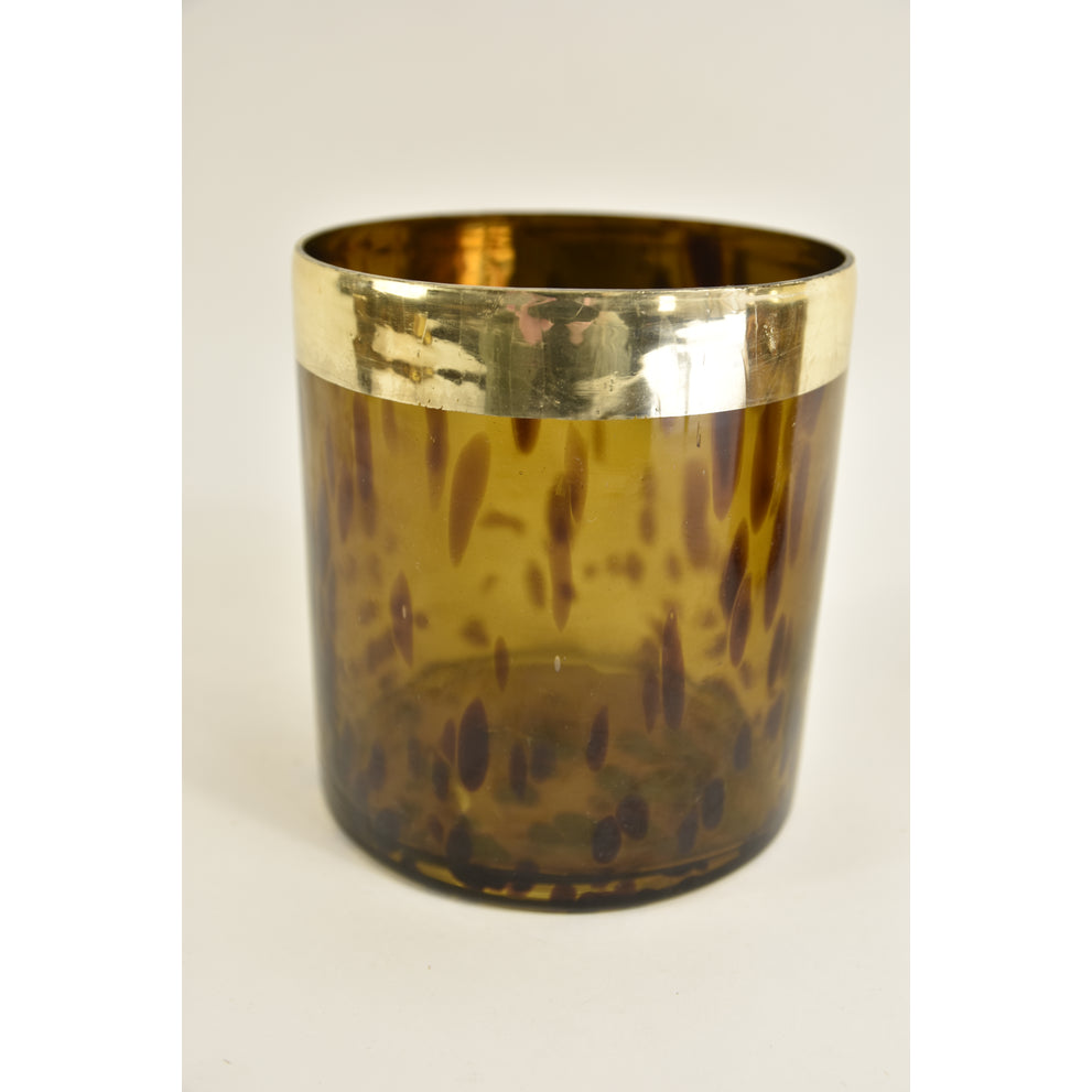 pc. 1 glass vase w/band "leopard" brown Ø 13x14 cm