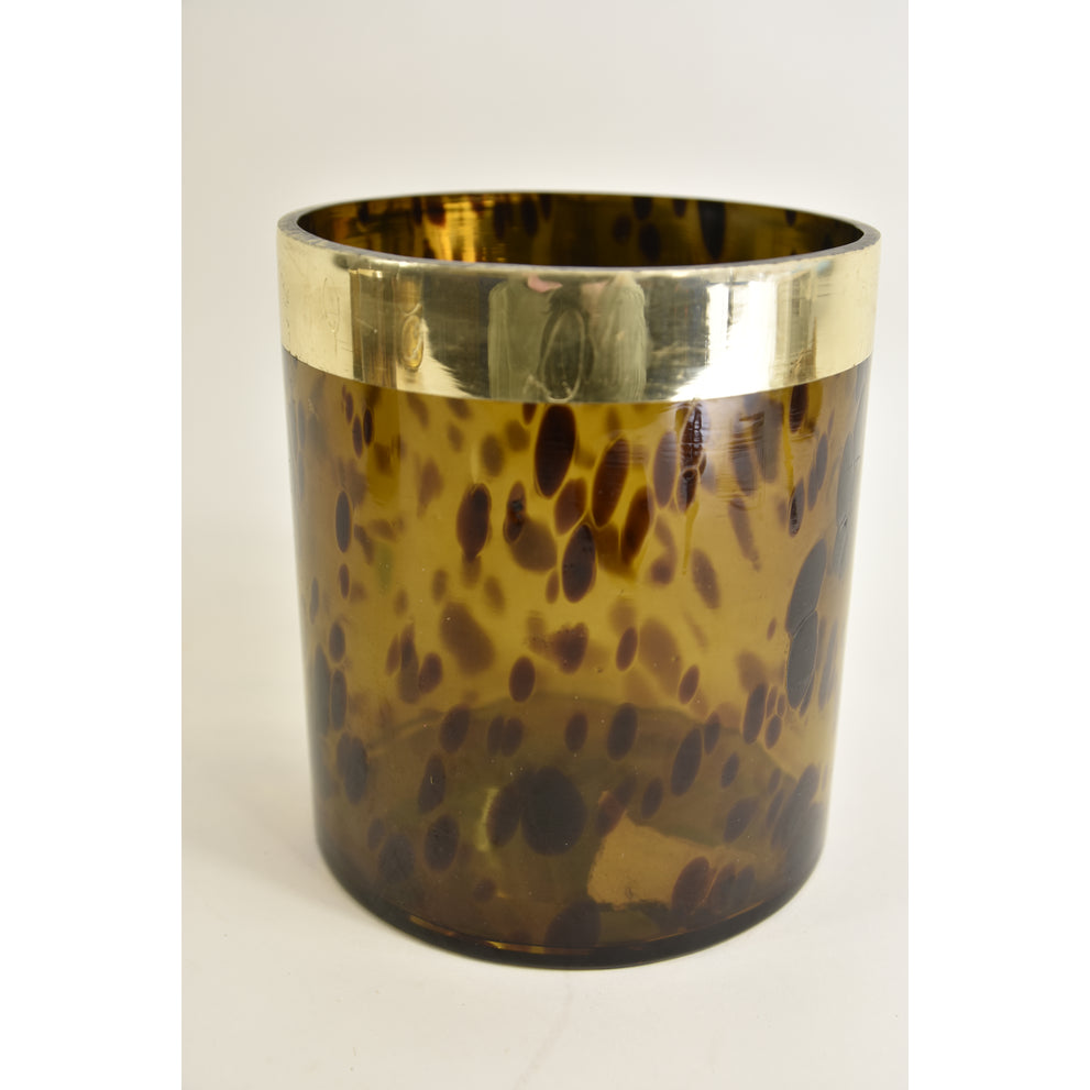pc. 1 glass vase w/band "leopard" brown Ø 15x17 cm