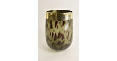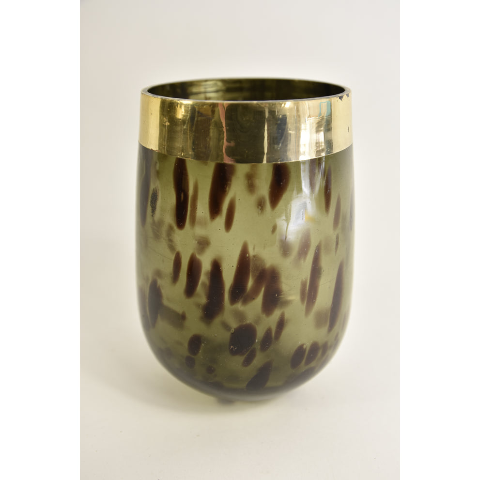 pc. 1 glass vase w/band "leopard" green Ø 10x14 cm