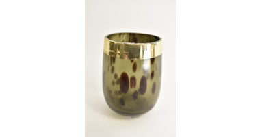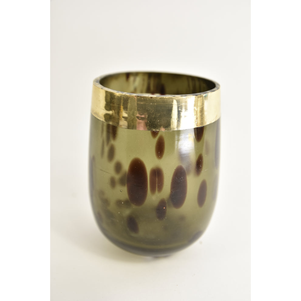 pc. 1 glass vase w/band "leopard" green Ø 8x9 cm