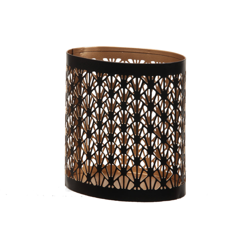 pc. 1 metal candleholder ''crown'' oval black/gold 9x6x10cm