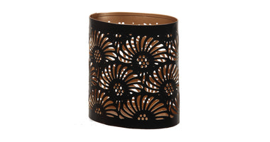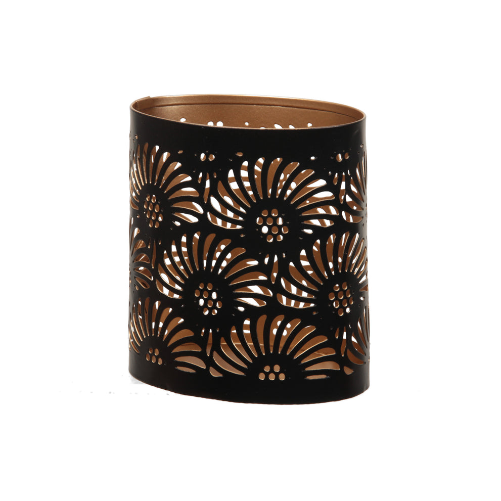 pc. 1 metal candleholder ''fan'' oval black/gold 9x6x10cm