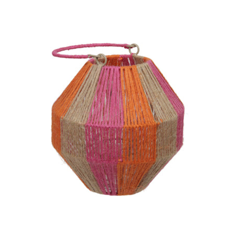 pc. 1 sisal rope lantern/hanging nat./yel./pink Ø 21x21.5 cm