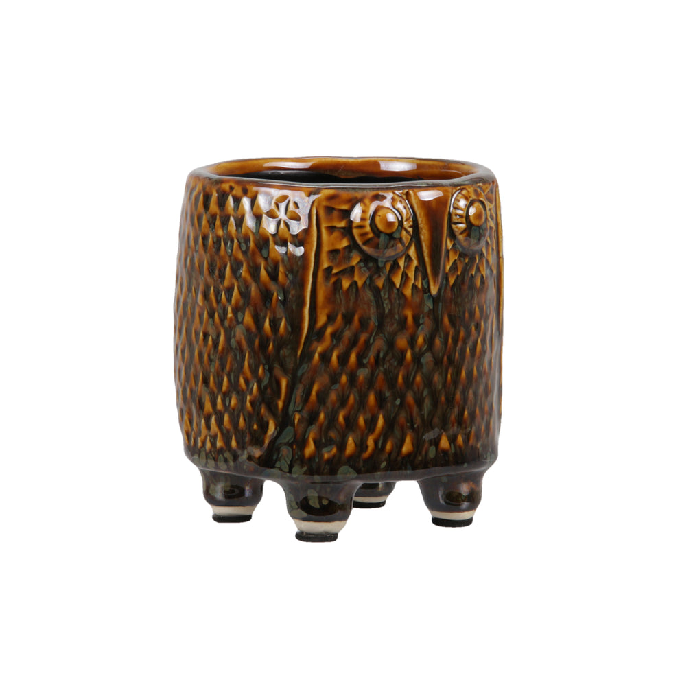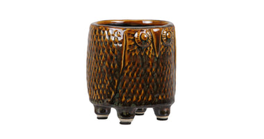 pc. 1 stoneware owl pot brown Ø 9x10 cm
