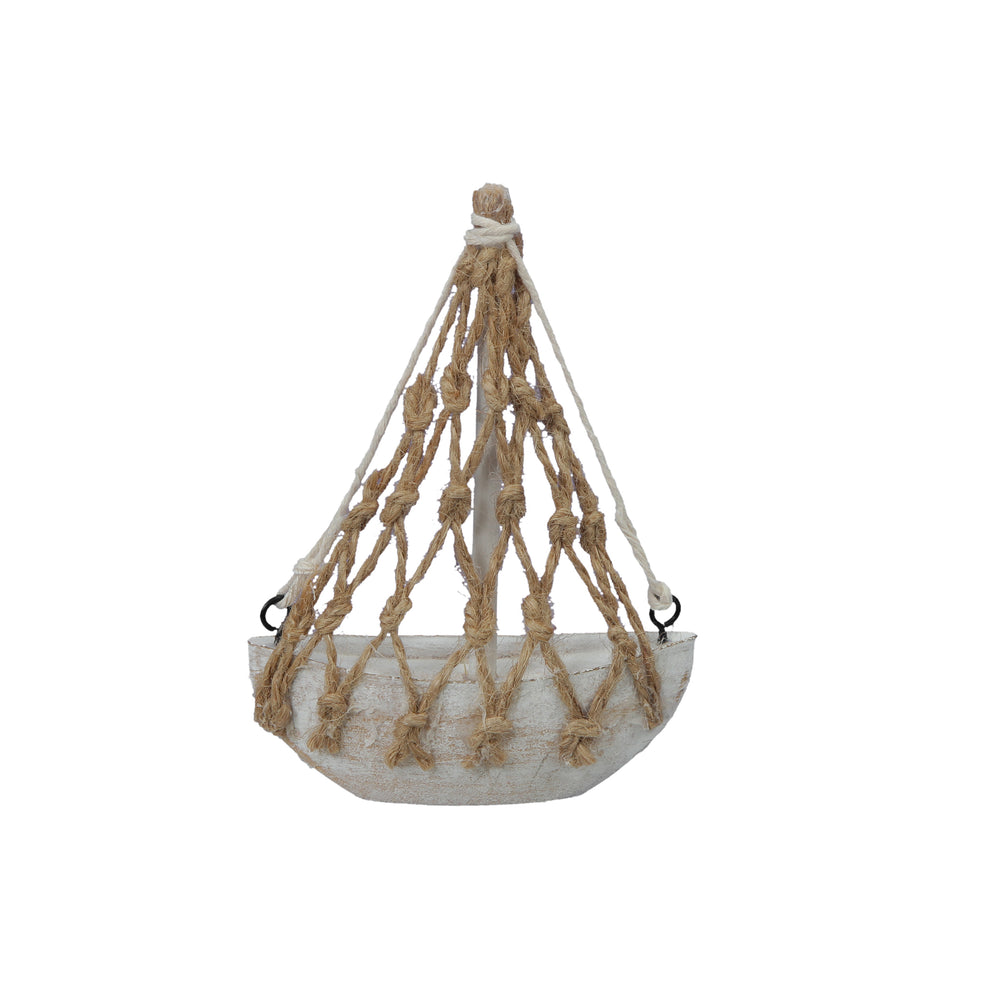 pc. 1 wooden boat white/sand 9x3x11 cm