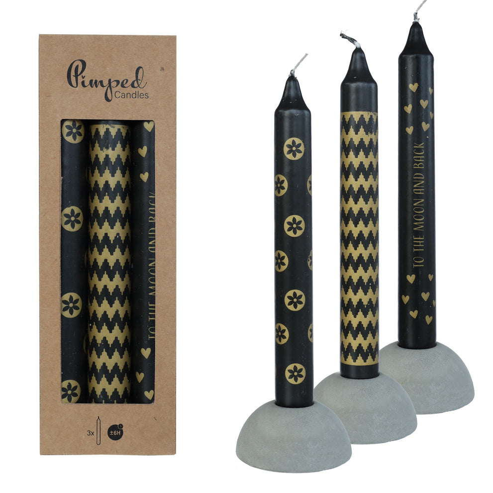 Pimped candles To the moon Ø2,2 h.20 cm black & gold Set van 3 assortie