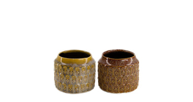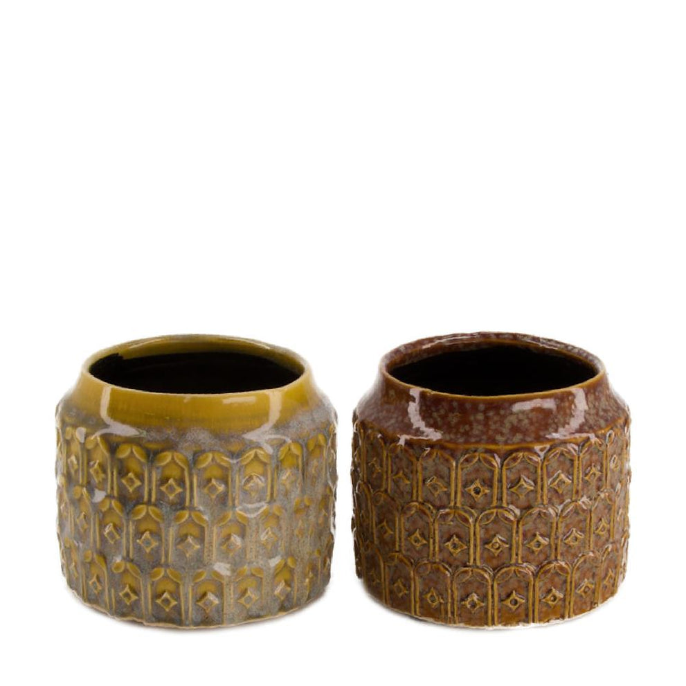 Planter ceramic Ø13x10.5cm Brown/Yellow mix