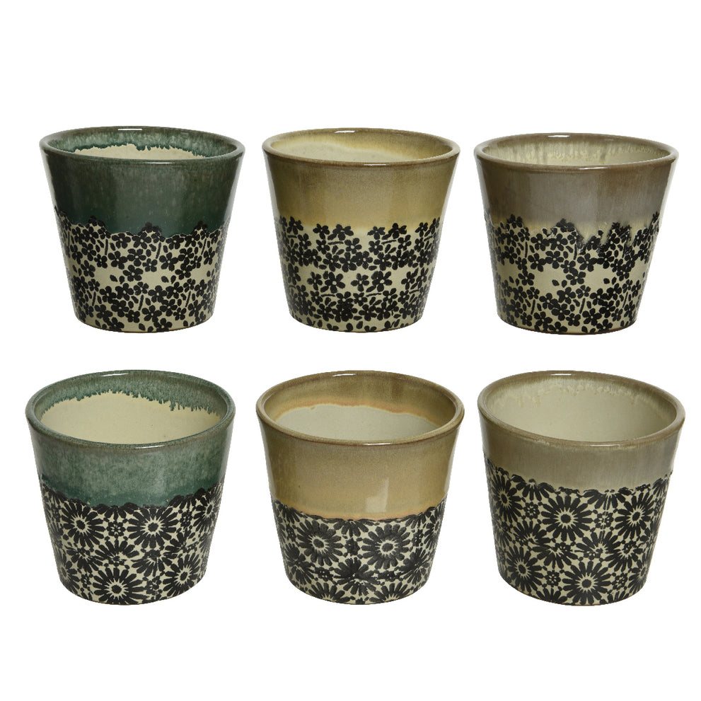 Planter ''flower'' terracotta 6 assorti H.12.8cm D.14cm