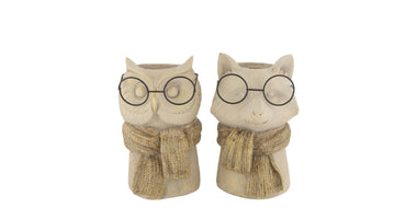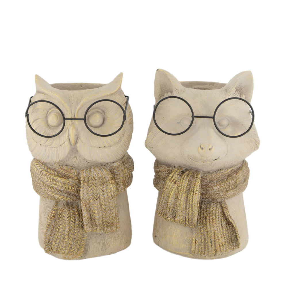 Planter fox cement 13.5x13.5x21cm Mixed Light brown