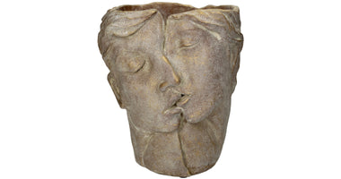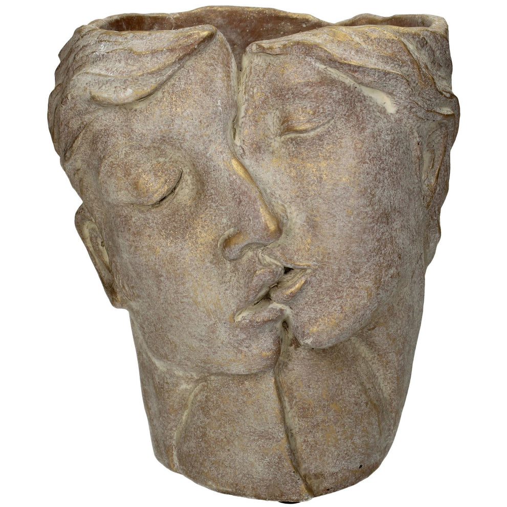 Planter Half Face Concrete Gold 19.5x16.5x22cm
