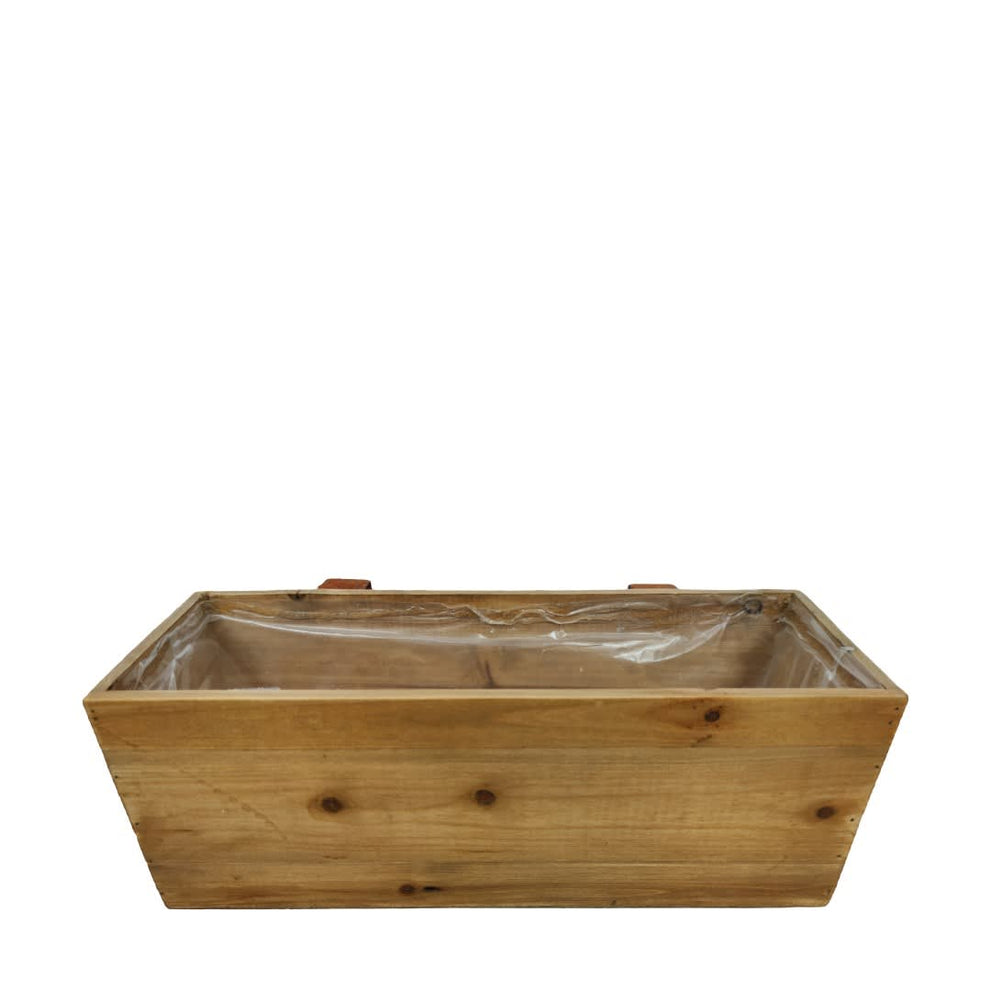 Planter Hanging wood with plastic 38x13x14cm Natural