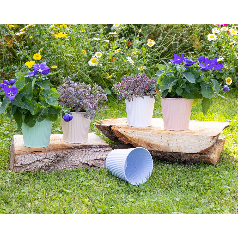 Planter zink ''ribbel'' 5 kleuren assortie H10,6 D11cm