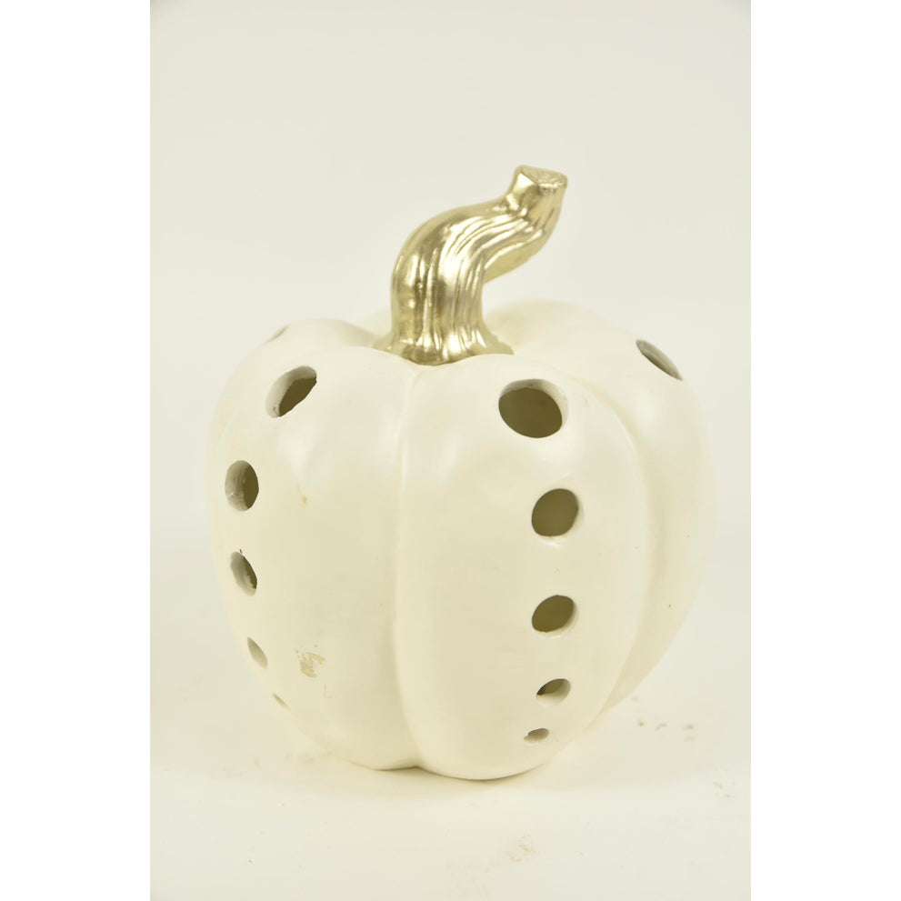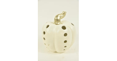 POMPOEN LED H18CM WIT/GOUD AARDEWERK
