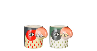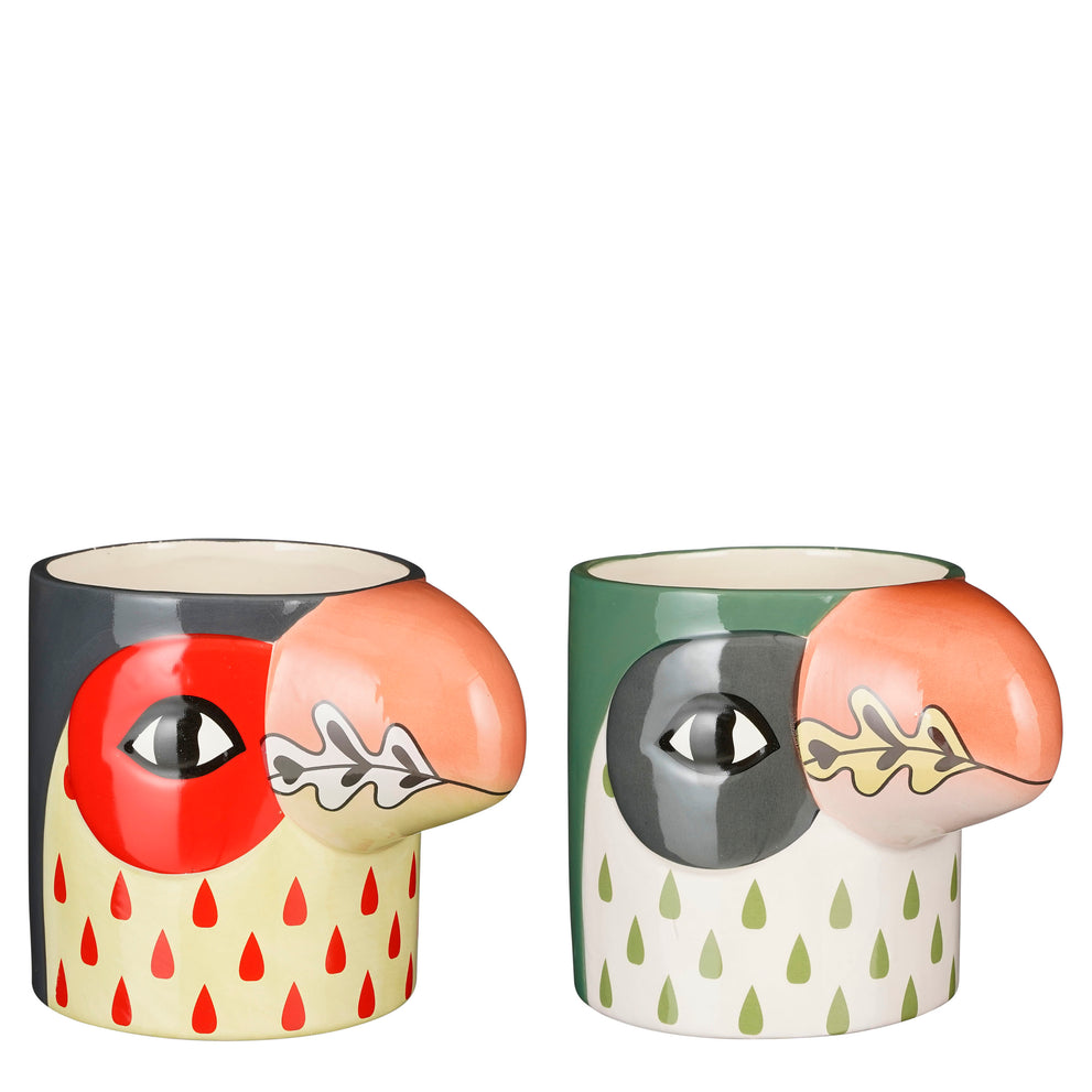 Pot bird green red 2 assorted - h14,5xd13,5cm