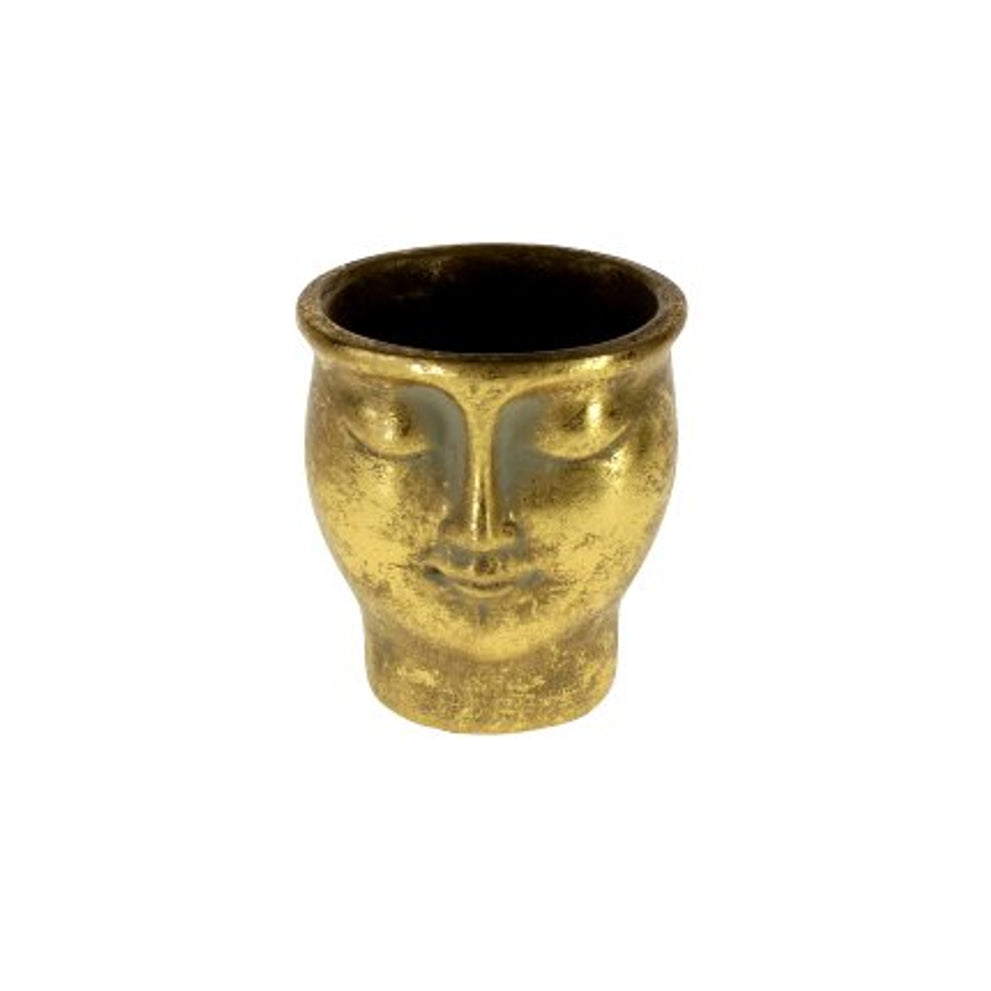 Pot cement gezicht goud 10.5x10.5x11.5 cm