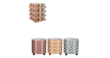 Pot rond bruin petrol oker 3 assorti - h11xd10,5cm