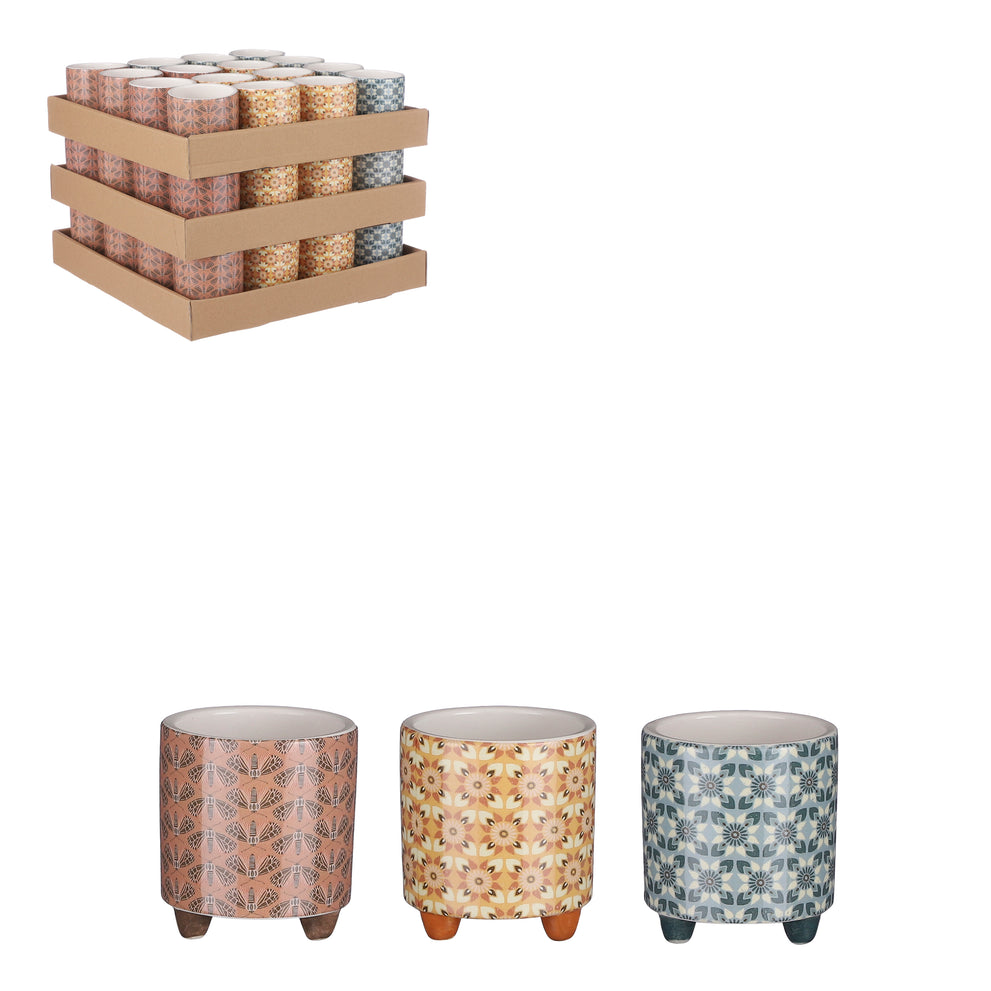 Pot rond bruin petrol oker 3 assorti - h8xd7cm