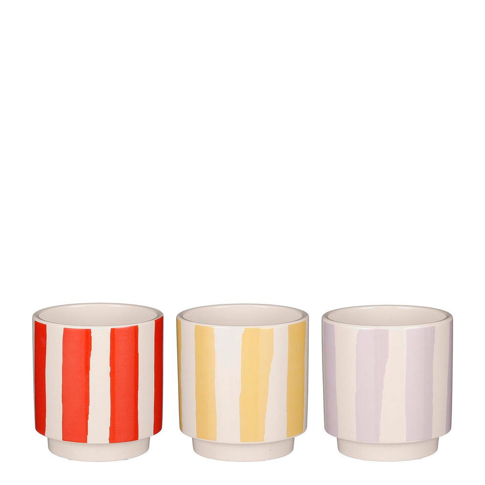 Pot rond lila geel rood 3 assorti - h12,5xd12cm