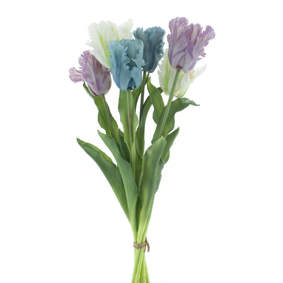 Real Touch Parrot tulip bundle Sally X6 mixed blue/pink/cream 51cm